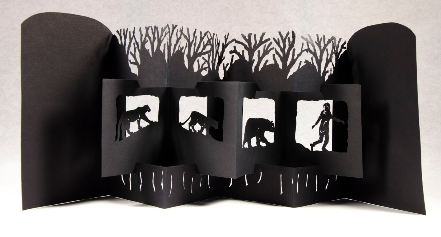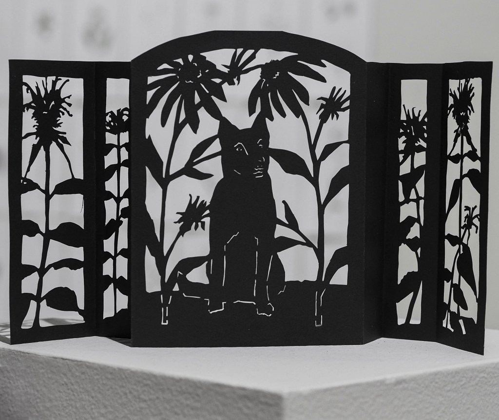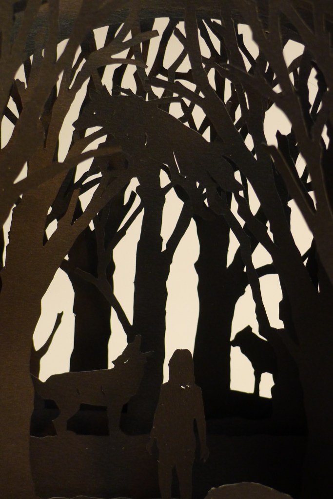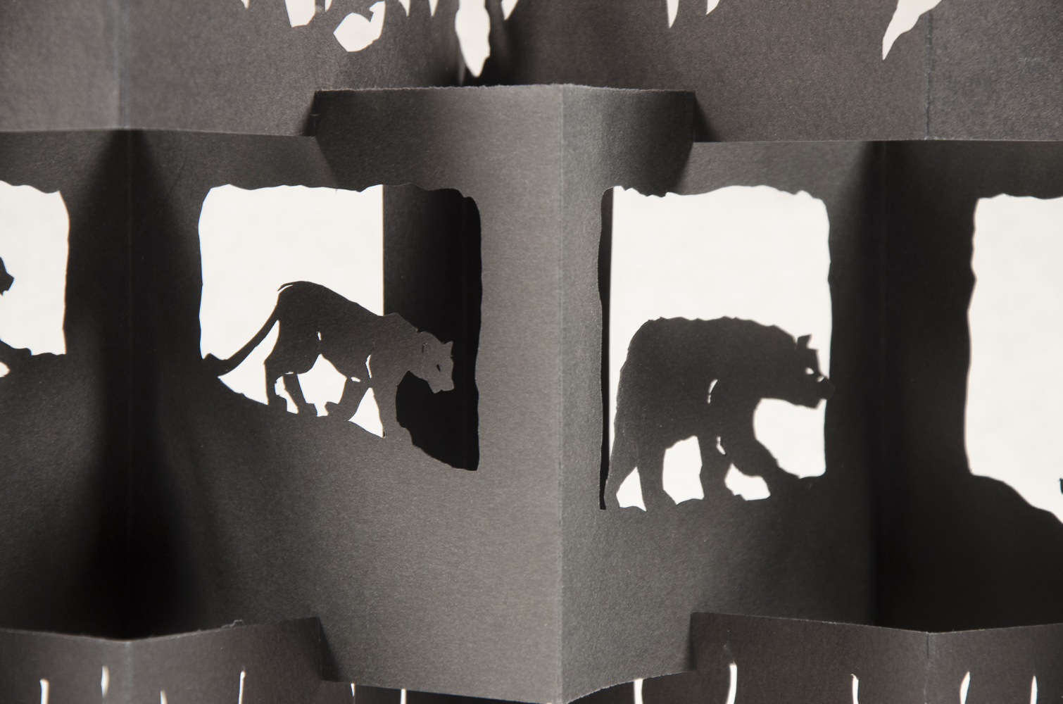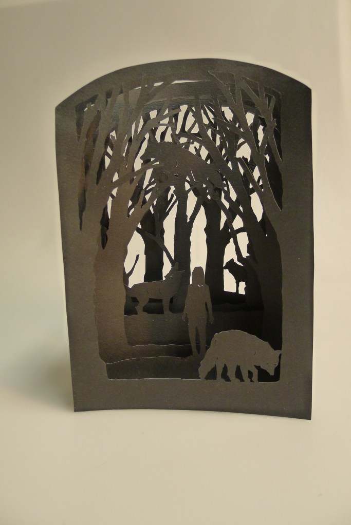 I long have been fascinated by and explored the world of night dreams––my own and those of family and friends. Dreams, like poetry, myth and fairy tales, speak to us in the language of image, symbol, archetype, and metaphor––and often come as nonlinear narratives to puzzle, mystify, and challenge. The practice of transposing dream narratives into artforms––while leaning into their metaphoric language, creative imagery, and archetypal symbols––can be affective, clarifying, and instructive––or, perhaps, even more powerfully, can help dreamers creatively “just be with” and/or be open to the nonlinear, irrational, mysterious, and magical. For many years, a fascinating theme has recurred in my dreams that involves encounters with wild animals while walking on a forest path. Inspired by the silhouette illustrations from fairy tale books of my childhood, I have adopted the medium of paper-cutting as a way to bring my dreams to form. As a way to illustrate the dream-story and to dialogue with its metaphors and archetypes,